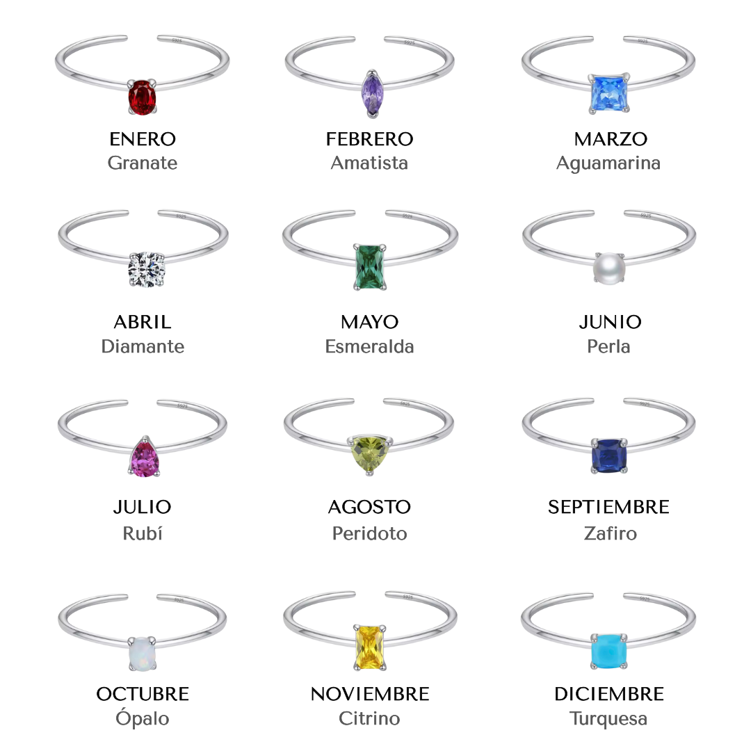 *Las piedras de esta colección son zirconias seleccionadas por su color y brillo, inspiradas en las piedras de nacimiento tradicionales.