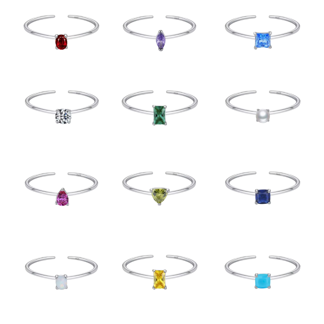 Anillo en plata 925 con zirconia inspirada en piedra de nacimiento (birthstone).