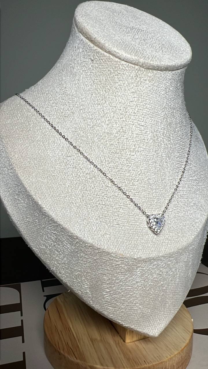 Collar en plata fina 925 con corazón elevado y zirconias cubicas alrededor. Cuenta con doble extensión de 4cm para ajustar el tamaño de la cadena.
